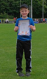 Tom Keller ging über 80m Hürden (Platz 7), im Weitsprung (Platz 8) und 800m (Platz 6) der M14 an den Start und holte überall eine Urkunde ab.