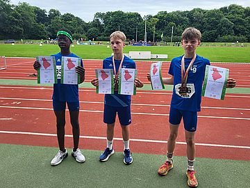Medaillen gab es in der U14 auch in der Vierkampf-Teamwertung. Gold und einen Vereinsrekord holten sich die Jungen in der Besetzung Leo Keller, Jonas Kosanetzky, Richard Ejiogu, Jakob Edelmeier, Henry von Hahn. Bronze gab es für die Mädchen Greta Westphal, Lia Schmidt, Dina Ali, Mia Habicht, Mina Thomas.