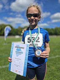 Ebenfalls über eine Medaille freute sich Emily Podszuweit, sie wurde im Block-Mehrkampf Wurf mit 1.766 Punkten Dritte der W13.