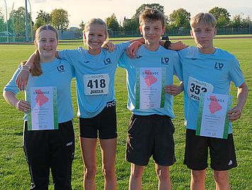 Gemeinsam sind wir unschlagbar, hieß es für die U12-Mädchenstaffel der LG. In der Besetzung Anni Czympiel, Lisa Keune, Hannah Sonntag (alle 9 Jahre) und Mathilda Danzeglocke (10) liefen sie der Konkurrenz uneinholbar davon. Als Sieger feierten sich schließlich Emily Podszuweit (W14) im Speerwurf.
