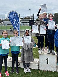 Grauer Himmel und kühle Temperaturen hindern Leichtathleten nicht daran, ihrem Sport nachzugehen. Das gilt auch schon für die jüngsten. So zog der LG Tross vergangenen Sonntag nach Lüdenscheid, wo die Kinder ab dem Jahrgang 2016 an einem Wettkampf im altehrwürdigen ehemaligen Zweitliga-Stadion von RW Lüdenscheid teilnahmen. Rennen (50m), (Weit-) Springen, (Ball-) Werfen und (800m-) Laufen standen natürlich auf dem Programm. Besonders aufregend waren dabei die 4x 50m Meter Staffeln, die die Mädchen U10 und Jungen U12 für sich gewannen. Doch auch in den Einzeldisziplinen gab es viele Siege und Podestplatzierungen. Das breiteste Lachen dürften dabei Anni Czympiel (Jg. 2016) mit 5 Siegen bei 5 Starts und Leo Keller (Jg. 2013) mit 4 Erfolgen bei 4 Starts auf dem Gesicht gehabt haben. Doch auch für die anderen LG-Teilnehmer sprangen etliche Erfolge und Podestplatzierungen heraus. So waren weiterhin am Start: Lisa Keune, Finn Blicke (alle Jg. 2016), Nail Altin, Juna Holt, Mathilda Danzeglocke, Charlotte Fründ (Jg. 2015), Salma Lassoule, Jonas Keune (Jg. 2014), David Reiss, Jonas Kosanetzky, Jakob Edelmeier (Jg. 2013), Josefine Fründ (Jg. 2012), Amina Lassoule (Jg. 2011).
