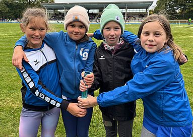 Gemeinsam sind wir unschlagbar, hieß es für die U12-Mädchenstaffel der LG. In der Besetzung Anni Czympiel, Lisa Keune, Hannah Sonntag (alle 9 Jahre) und Mathilda Danzeglocke (10) liefen sie der Konkurrenz uneinholbar davon. Als Sieger feierten sich schließlich Emily Podszuweit (W14) im Speerwurf.