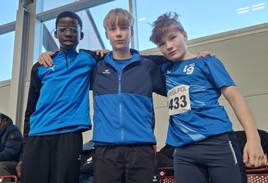 Im Kugelstoßen der M12 siegte überlegen Jonas Kosanetzky, Jakob Edelmeier wurde dritter. Im Speerwurf M12 schaffte die LG einen dreifachen Erfolg. Nordrheinmeister Jonas Kosanetzky warf wieder in die Nähe seines Vereinsrekordes und siegte vor Leo Keller und vor Jakob Edelmeier. Über die 60m-Hürden war dann aber Verbandschampion Leo Keller ganz vorne. Im Hochsprung reichte es für Leo dieses Mal nur zu Silber. Ebenfalls Silber erreicht mit neuer persönlicher Bestweite Richard Ejiogu im Weitsprung.